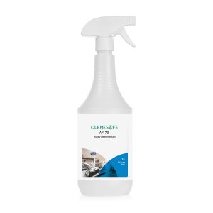 CLENESAFE AF 70, tüm yatay ve dikey yüzeylere uygun, kullanıma hazır püskürtme dezenfektanıdır. 30 cm mesafeden püskürtülür. Temiz bir bezle silinir ve kurumaya bırakılır.